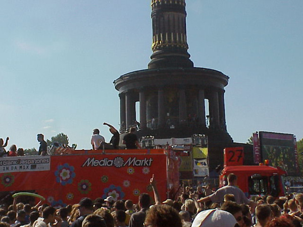 Unser vom Media Markt unterstützer Love Parade Wagen mit der Wagennummer 27 bahnte sich mit seinen 22m Gesamtlänge und seiner leistungsstarken JBL-Soundpower-Soundanlage, die bis zum Ende der Parade optimalen Schalldruck powerte, seinen Weg durch die tanzende Menge.