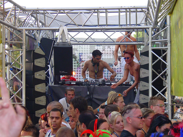 Im Übrigen waren wir es, die erstmals in der Geschichte von Paraden ein Line-Array-System auf einem Love Mobile einsetzten, was eine wunderschöne Klangstreuung und eine optimale Ausnutzung des Wirkungsgrades der Soundanlage ermöglichte