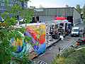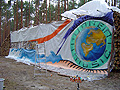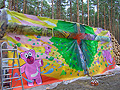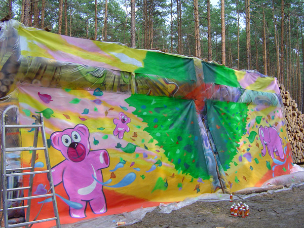 Die wieder einmal per Aerosolkunst gestaltete Lovemobile-Dekoration stand unbeabsichtigt mit ihrer psychedelischen Gestaltung mal wieder goldrichtig im Bezug mit der Parade und dem Wetter, da an diesem Tag alles irgendwie abgefahren war.